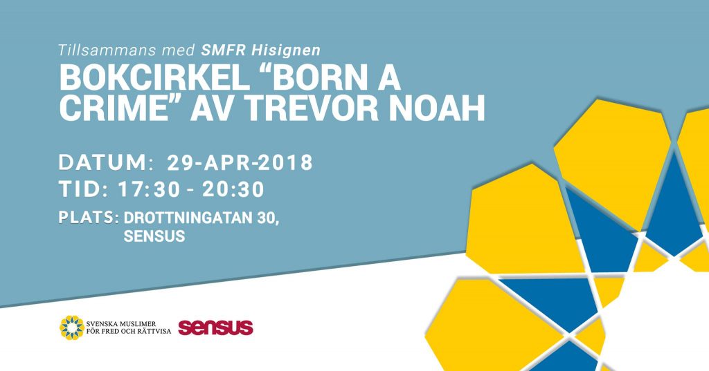 GÖTEBORG – Assalamu Aleykum/Fredlig Hälsning SMFR Hisingen välkomnar tredje tillfället av vår bokcirkel där vi läser Trevor Noahs ”Born A Crime: Stories from a South African childhood”. Under bokcirkelns gång kommer bl.a vi diskutera om de teman som uppstår i boken men även samtala och dela med oss våra känslor och tankar kring boken utifrån…