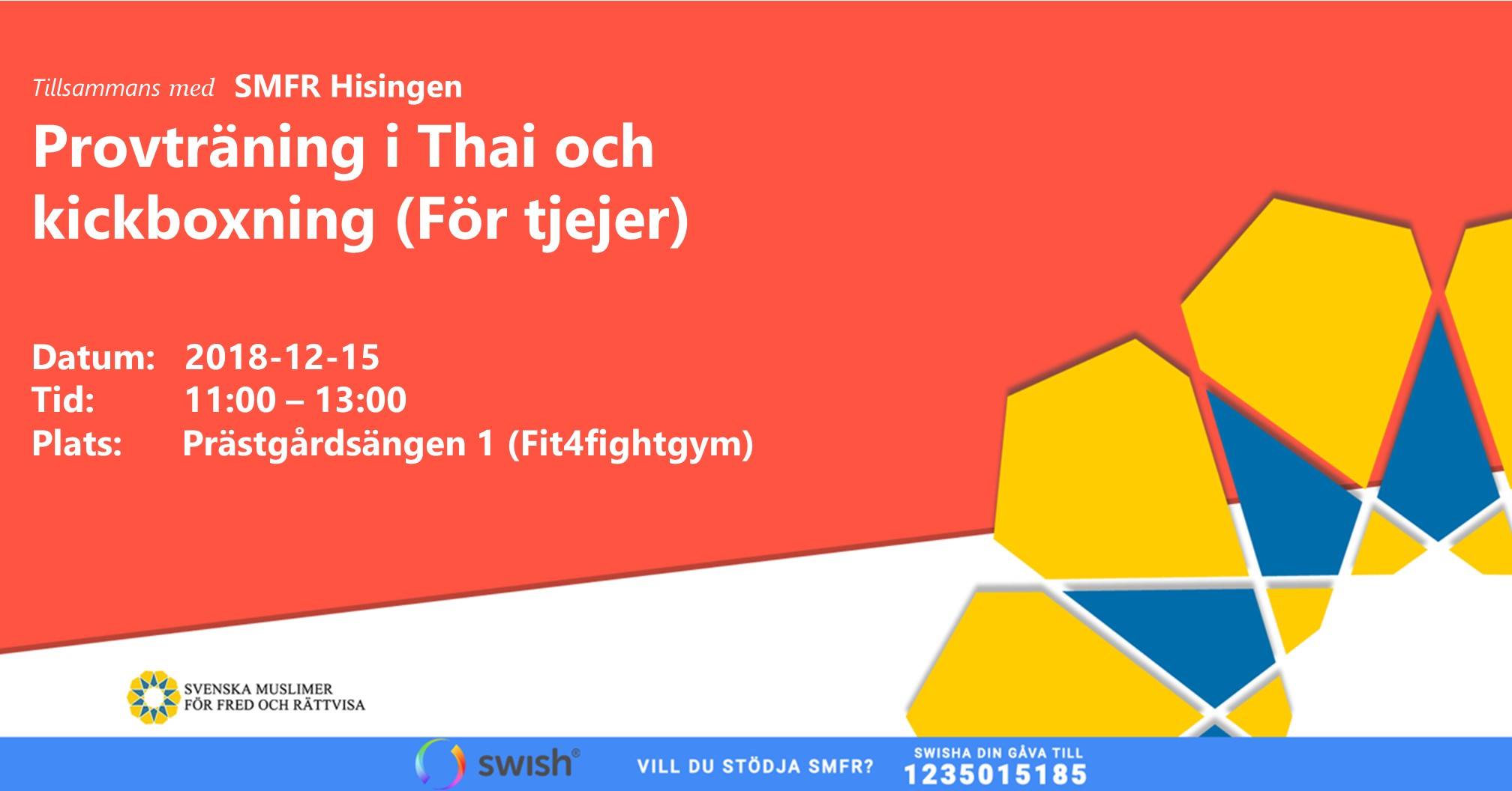 Vill ni prova på Thai och kickboxning? Följ med SMFR Hisingen till provträning för tjejer i Fit4fight lördagen den 15 december från 11:00 till 13:00 Det kommer finnas en kvinnlig instruktör, dock har både män och kvinnor tillgång till lokalen. Det finns 29 platser lediga just nu, det är först till kvarn som gäller. Följ nedanstående länk för att intresseanmäla er, då kommer ni även få en hel månad gratis provträning i Fit4fight (dvs ni kan gå på fler pass om ni så vill)