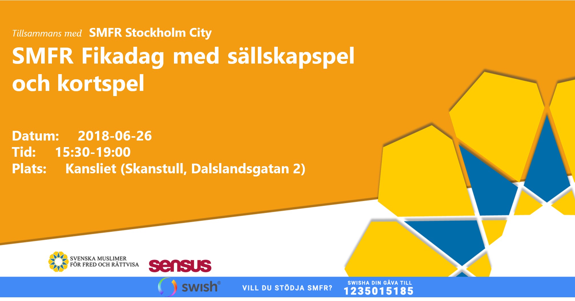 SMFR Stockholm City kommer anordna en fikadag där vi kommer samtidigt ha sällskapsspel (bland annat med andra ord), kortspel och många andra roliga aktiviteter. Om du vill kan du ta med dig fika, men det finns mycket fika som kommer att bjudas på plats bland annat Firni och glass. Ta med dina kompisar och din familj!
